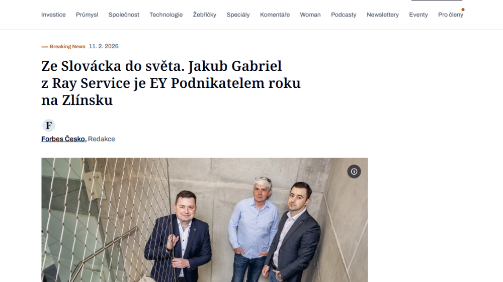 Forbes.cz nedávno zveřejnil článek o společnosti Ray Service, a. s., a jejím generálním řediteli Jakubu Gabrielovi, který získal ocenění EY Podnikatel roku 2025 Zlínského kraje.
