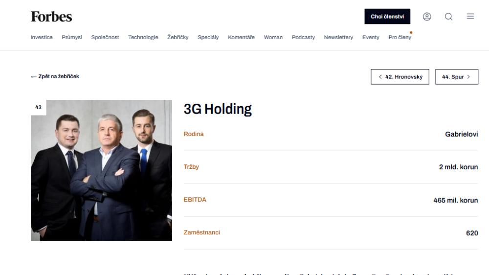 V letošním žebříčku největších rodinných firem Česka podle Forbes jsme se posunuli na 43. místo.